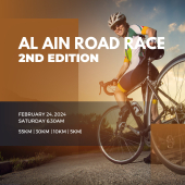 Starting and finishing at the iconic Al Ain Cycling Track, the looped circuit will take cyclists through the picturesque CITY OF AL AIN. 4 distances to choose from, 55km, 30km, 10km, and 5km. This road cycling event is open to Kids and Adult, from Social Ride to Elite level.