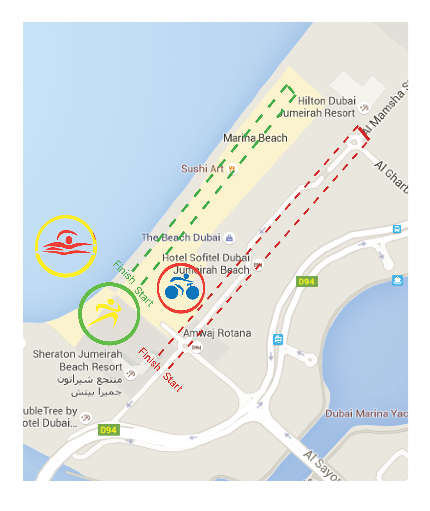 3.Swimming: 500 m along JBR beach (in front of the Sheraton Jumeirah)