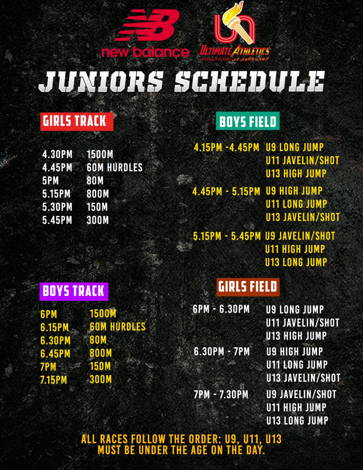 Girls & Boys Track and Field races will follow the order: U9, U11, U13